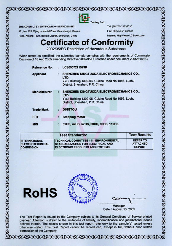 首頁->產(chǎn)品認(rèn)證->步進(jìn)電機(jī)RoHS認(rèn)證證書