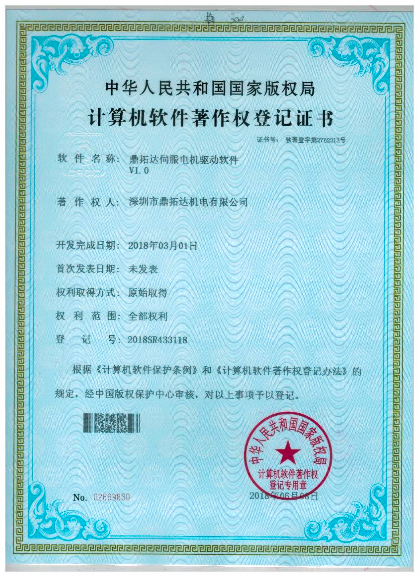 首頁->產品認證->鼎拓達伺服電機驅動軟件V1.0