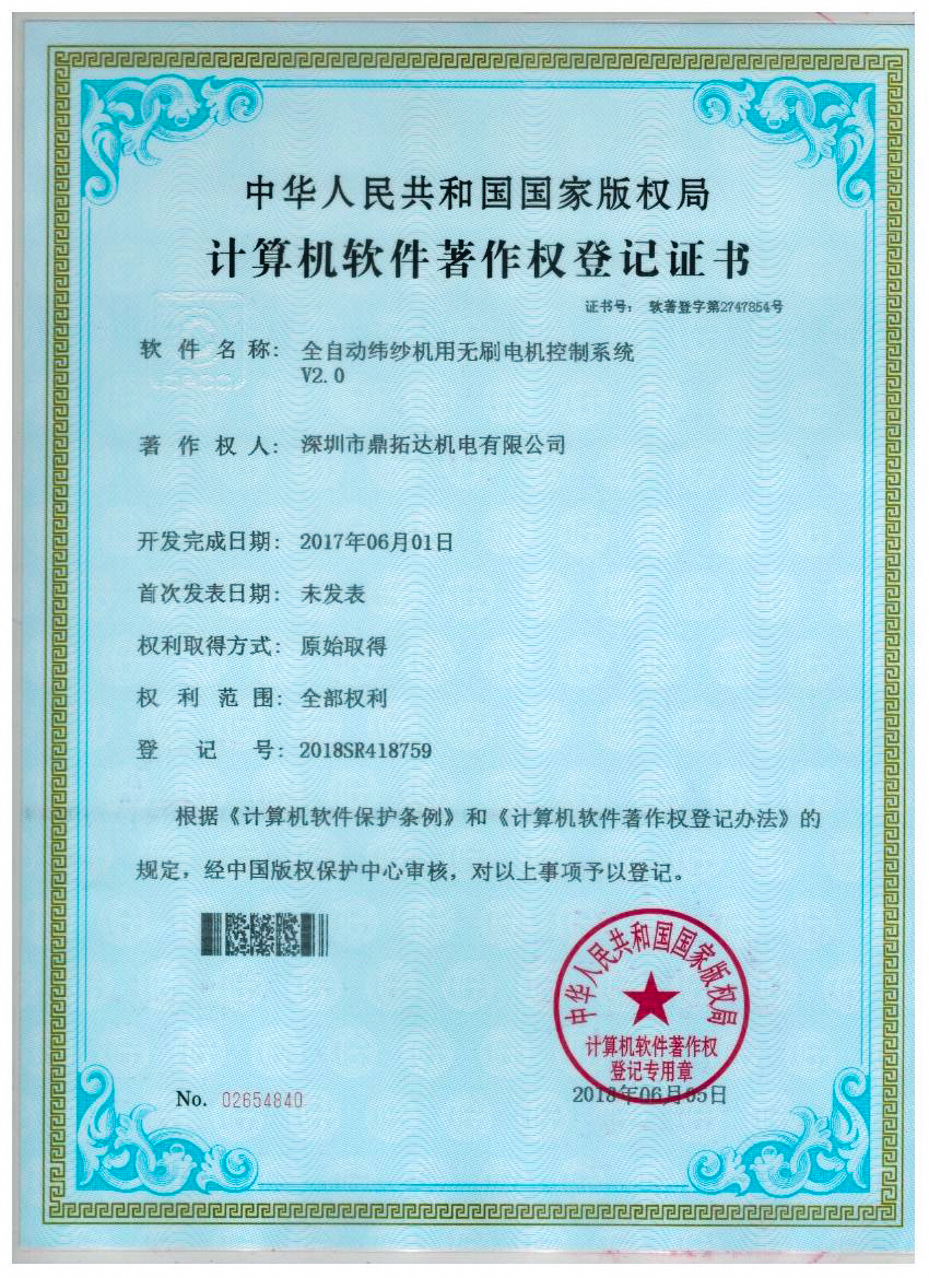 首頁->產品認證->全自動緯紗機用無刷電機控制...