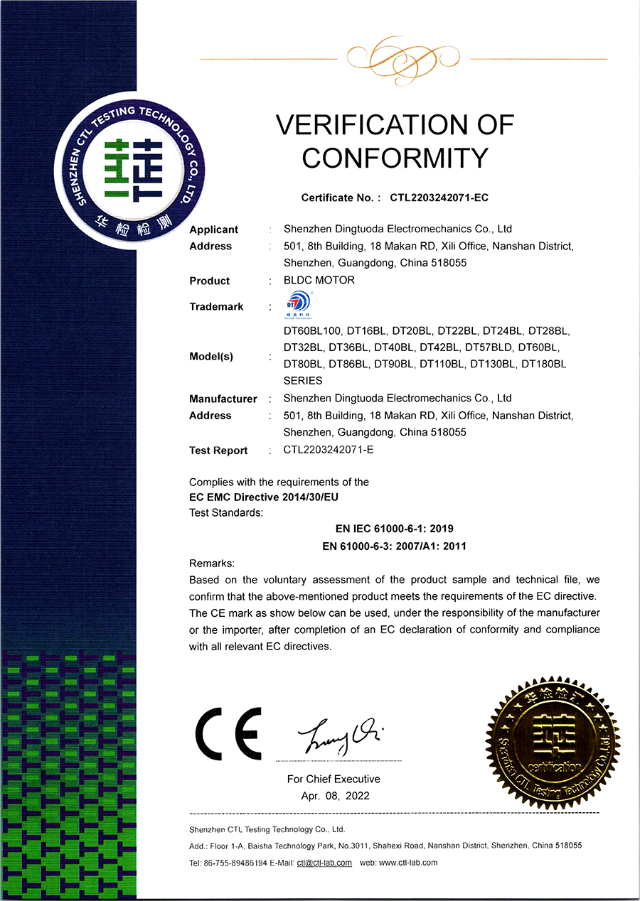 首頁->產品認證->無刷電機CE認證證書