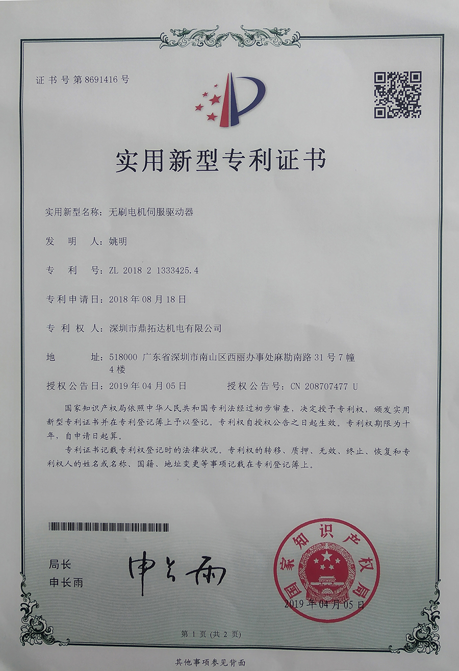 首頁->產品認證->無刷電機伺服驅動器
